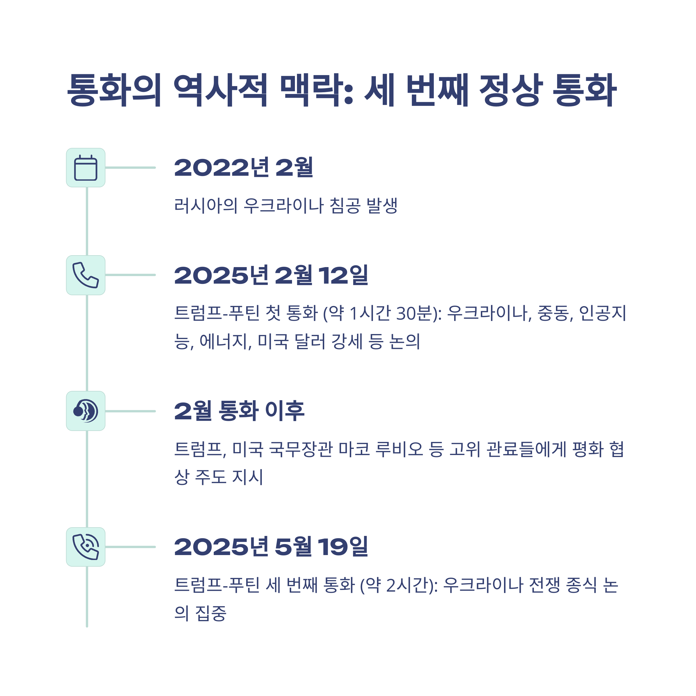 | 2025.05.19 | 푸틴-트럼프 3차 통화 | 휴전 논의 진전 가능성 |
