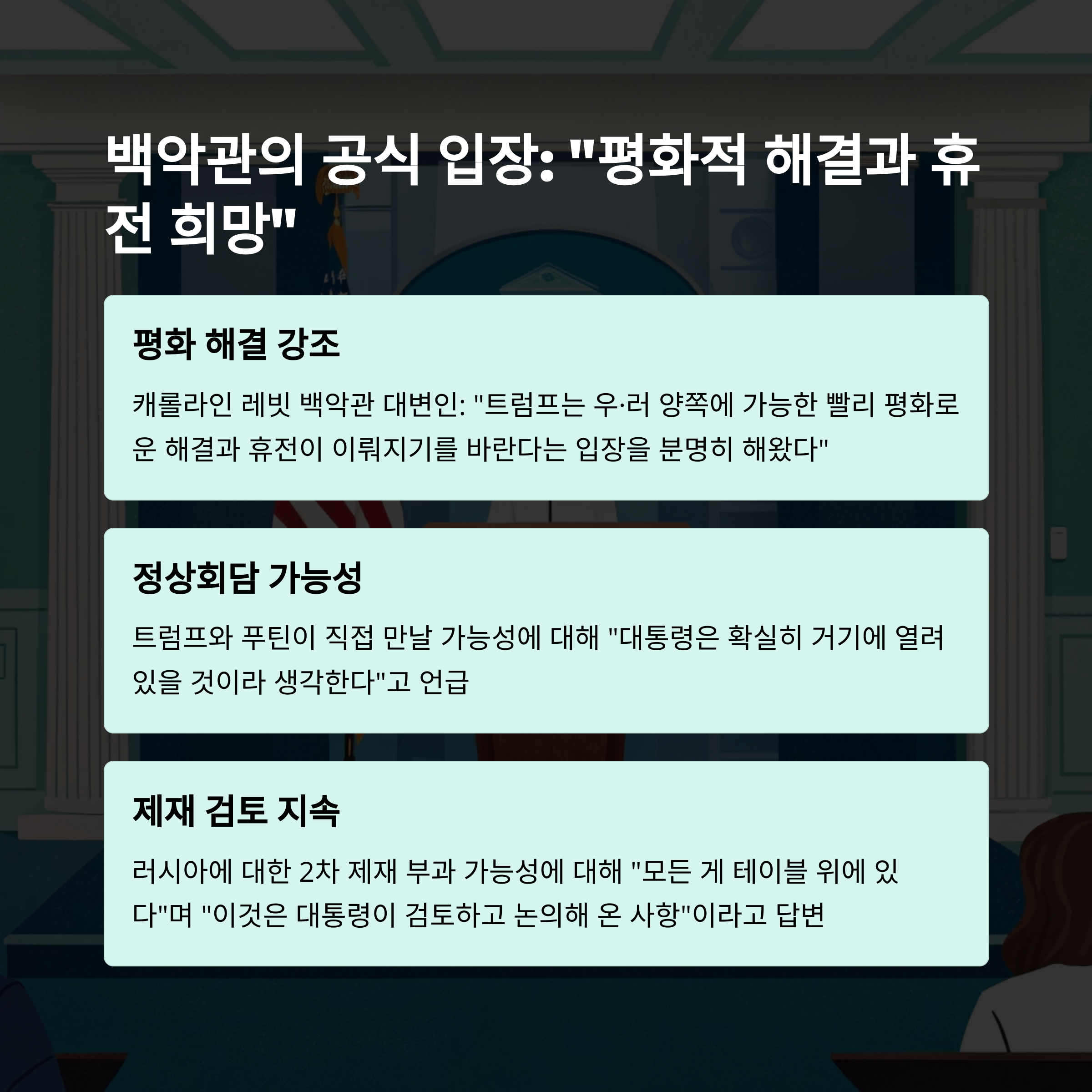 정상 간 직접 소통은 교착된 협상 국면에 변화를 줄 수 있는 강력한 신호로 작용합니다.