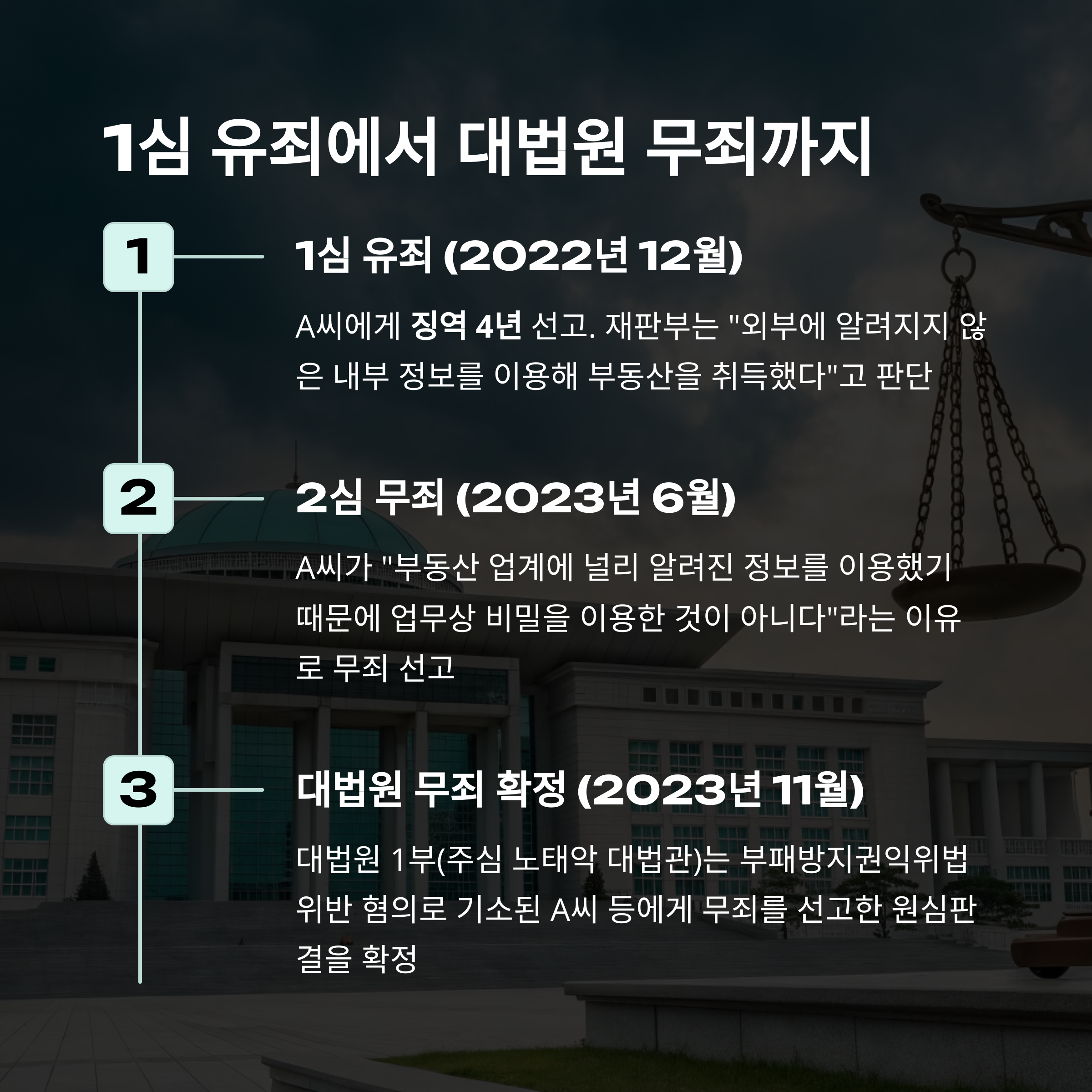 | 1심 | 유죄 (징역 4년) | 내부정보 이용 판단 |