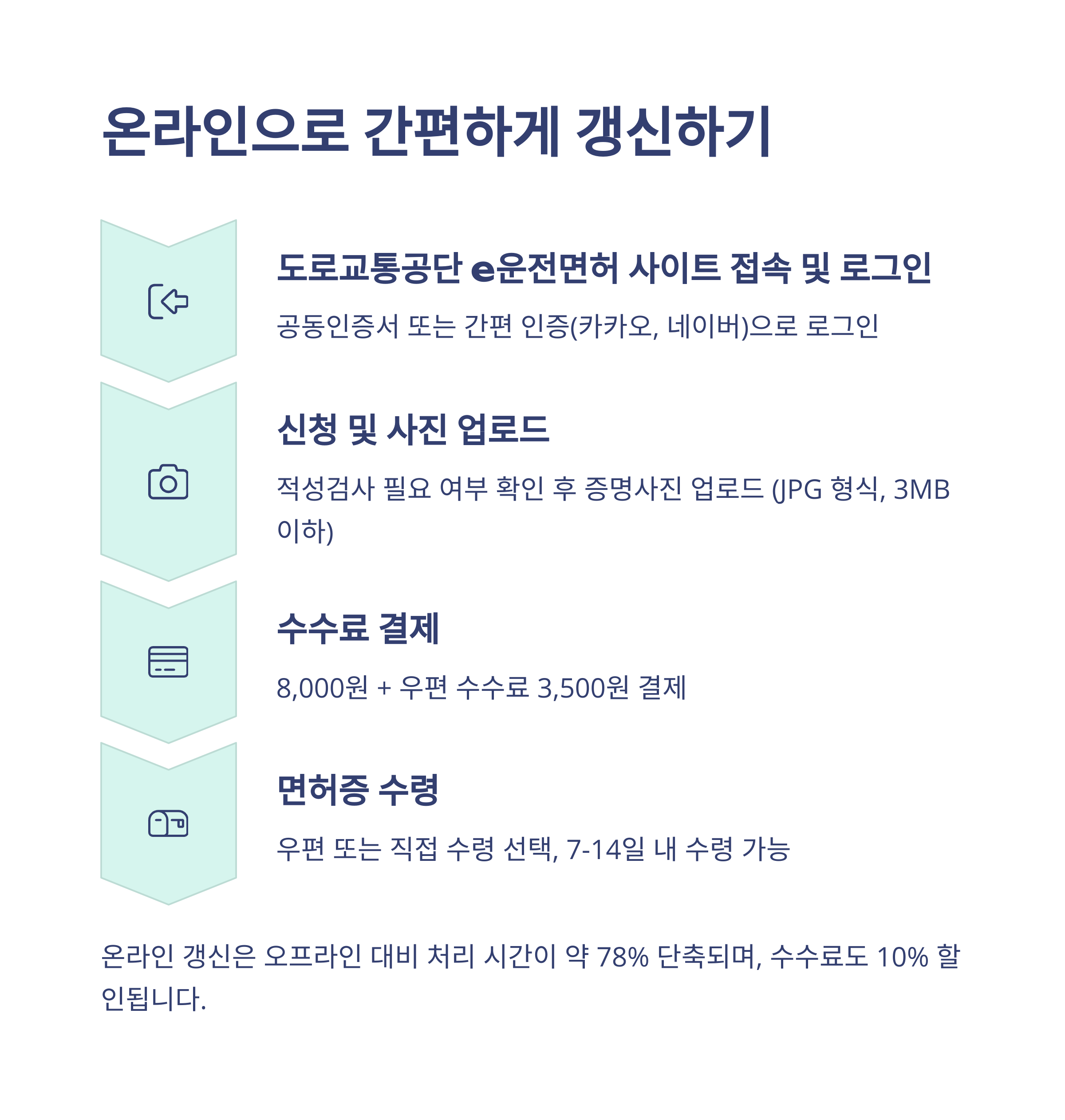 2025년부터는 도로교통공단 e운전면허 사이트를 통해 온라인으로 면허 갱신이 가능해졌습니다. 번거롭게 시험장이나 경찰서를 찾지 않아도 되고, 모바일 인증이나 공동인증서만 있으면 집에서도 손쉽게 신청할 수 있어요. 준비물만 갖춰 놓는다면 10~20분이면 끝!