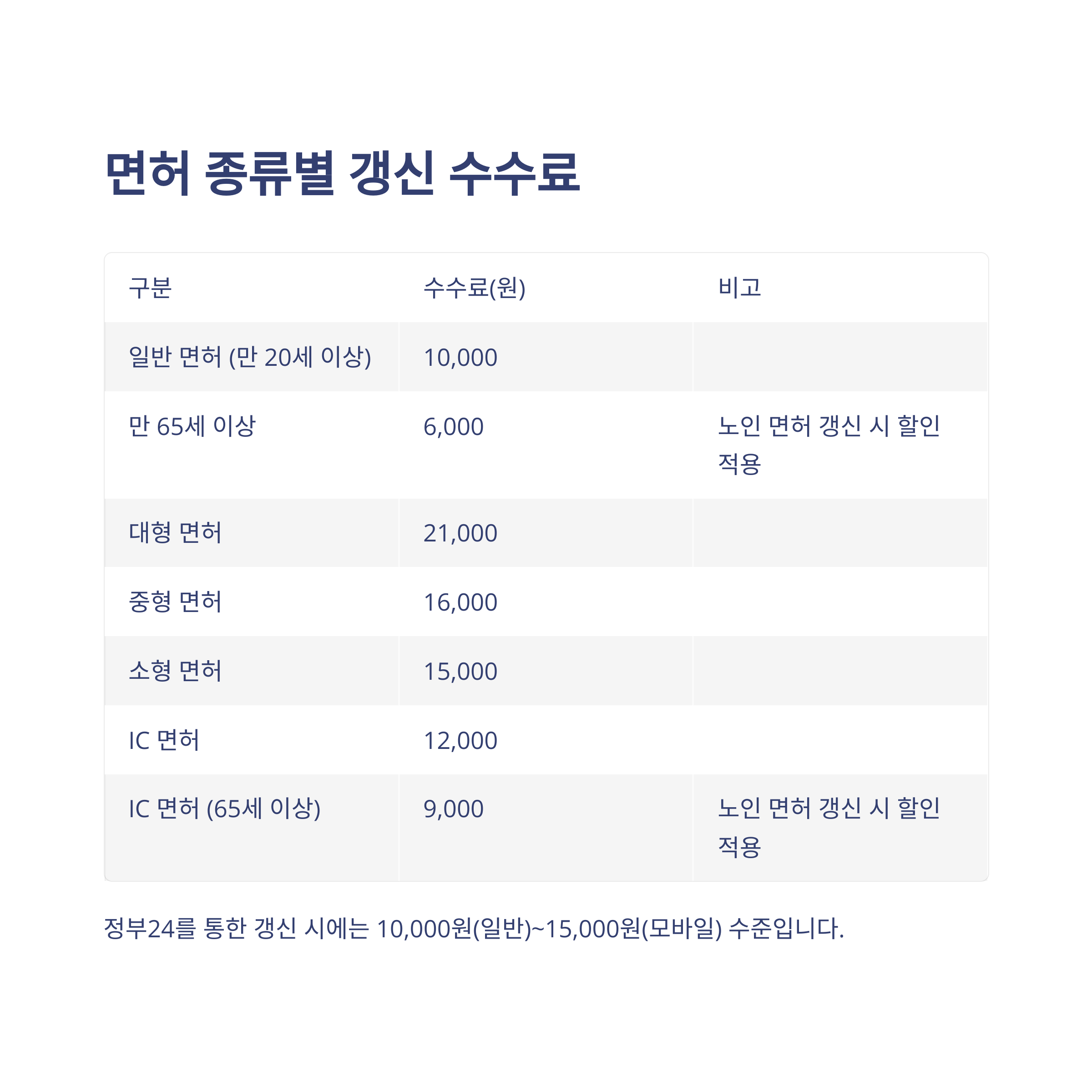 갱신 수수료는 면허 종류나 나이에 따라 조금씩 달라요. 65세 이상 어르신들은 할인도 적용된다고 하니, 꼭 확인해보세요. IC 운전면허증은 일반 면허증보다 가격이 조금 더 비싸긴 하지만, 보안 기능이 강화되어서 선택하는 분들도 많아요.