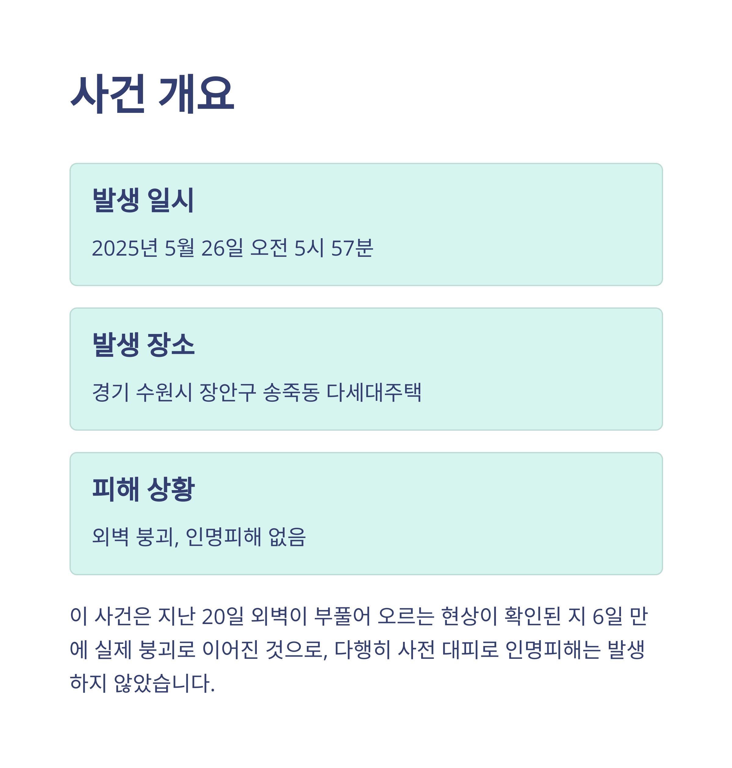 수원 외벽붕괴, 2025 붕괴사고, 다세대주택 안전, 노후건물 점검, 외벽 마감재, 건물 안전진단, 도시건축사고, 수원시 사고대응, 주거안전, 건축물 관리