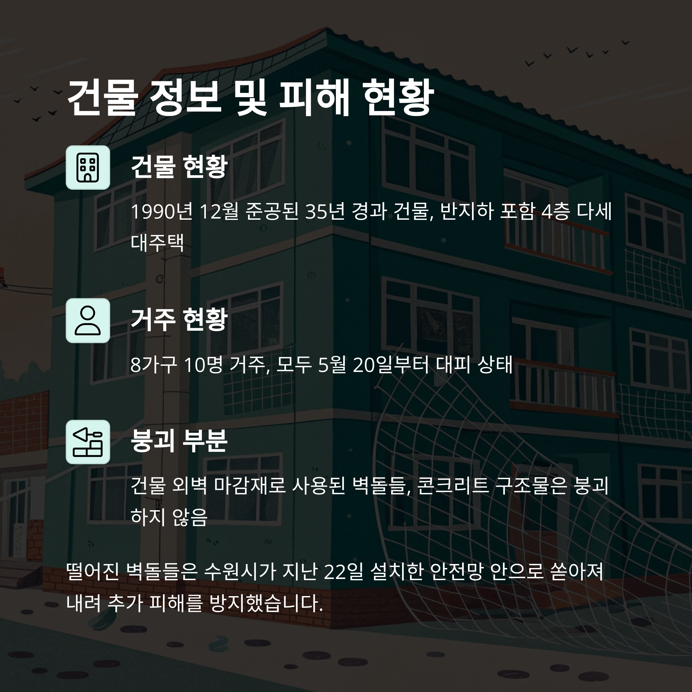 수원 외벽붕괴, 2025 붕괴사고, 다세대주택 안전, 노후건물 점검, 외벽 마감재, 건물 안전진단, 도시건축사고, 수원시 사고대응, 주거안전, 건축물 관리
