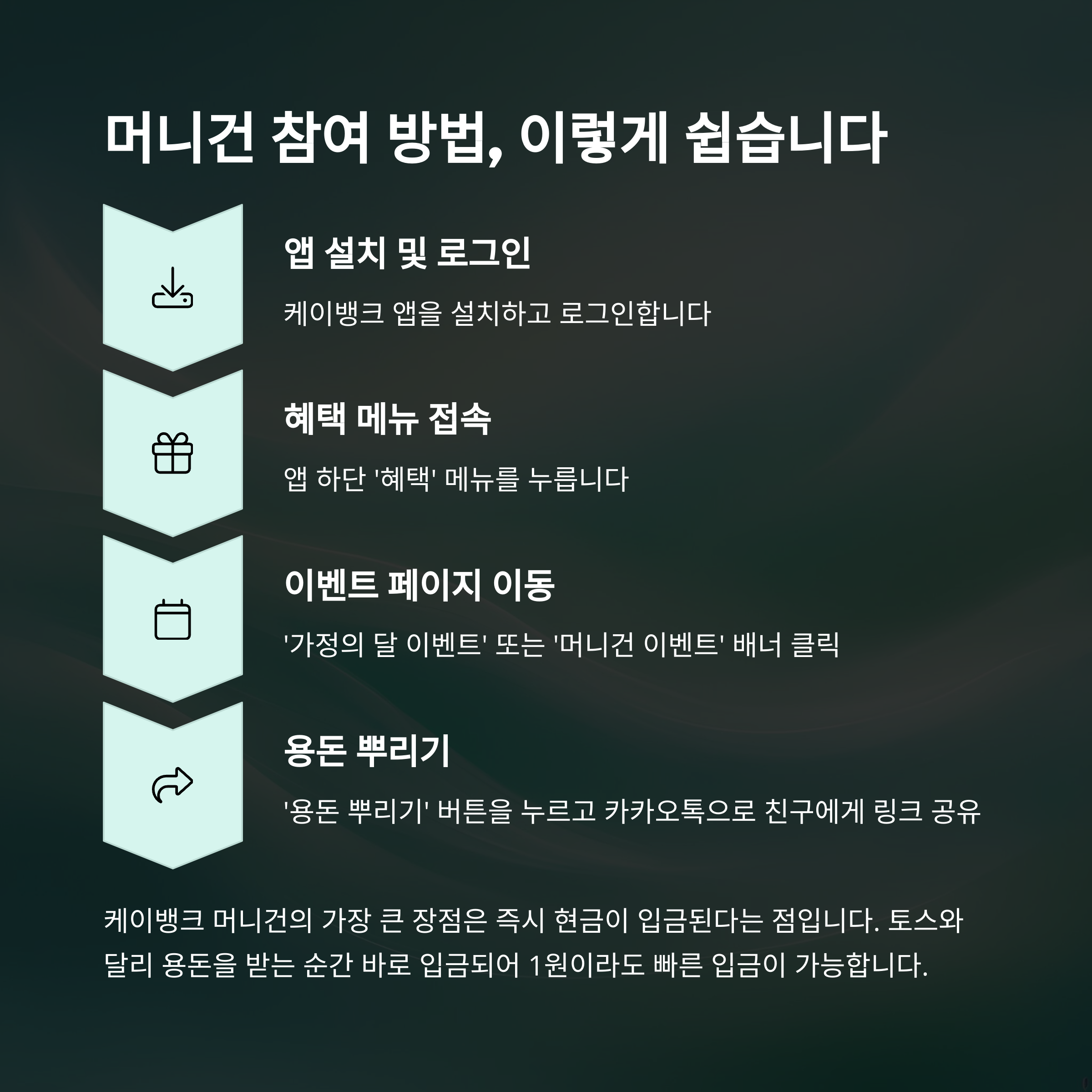 머니건, 케이뱅크, 용돈뿌리기, 앱테크, 실시간입금, 금융이벤트, 파킹통장, 입출금통장3.0, 리워드카드, 추천이벤트