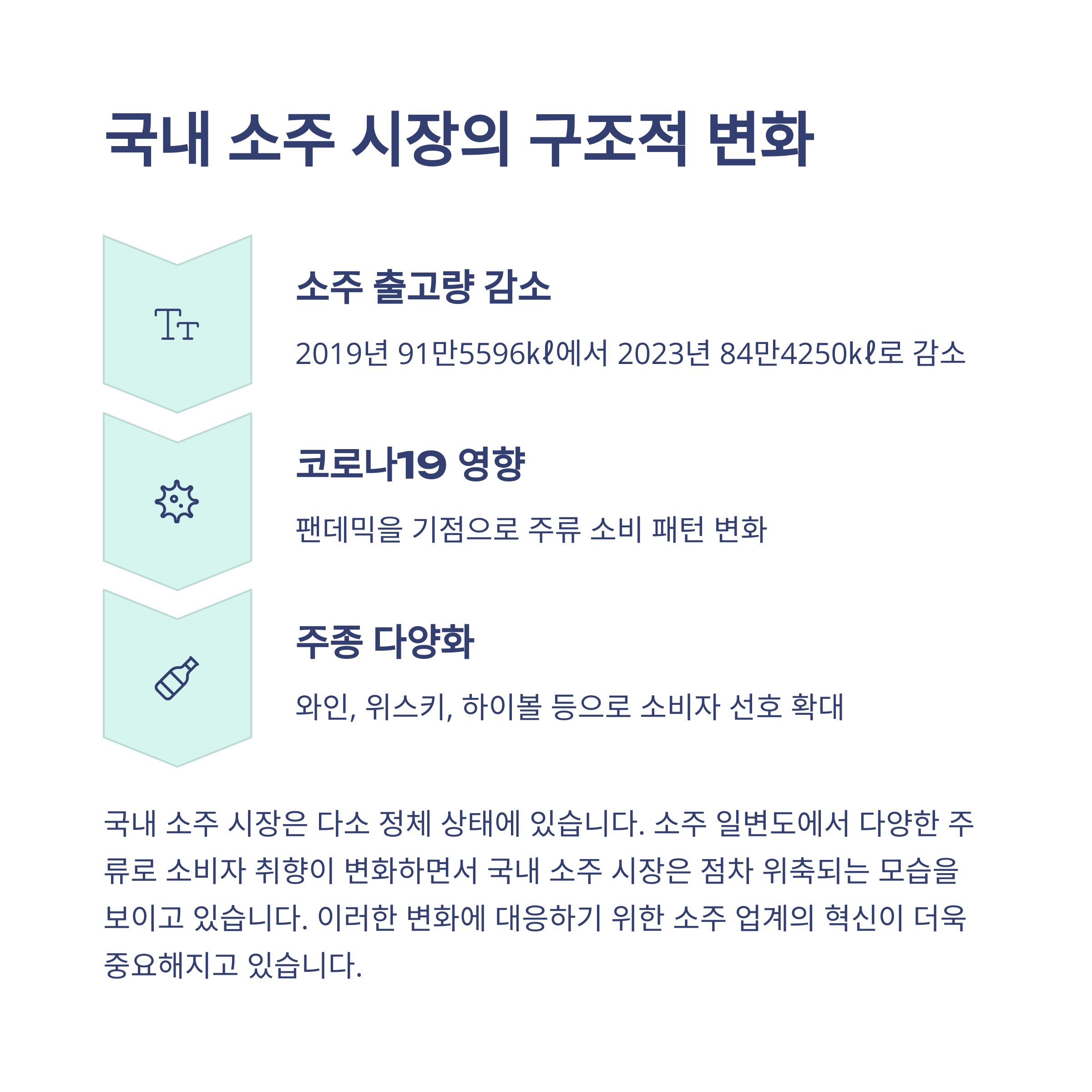 아직도 “회식=소주”라는 생각 갖고 계세요? 이제 그런 공식은 무너졌습니다. 코로나19 이후 국내 소비자들은 좀 더 다양하고 가벼운 술을 찾기 시작했어요.