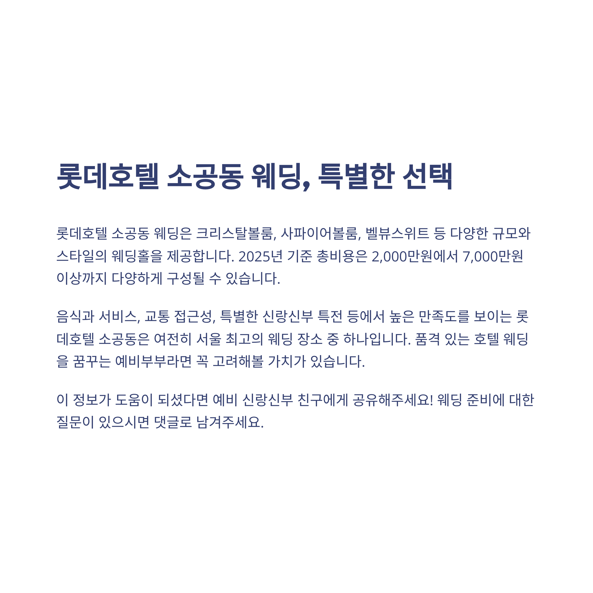안녕하세요! 저도 작년에 결혼식을 준비하면서 정말 수많은 웨딩홀을 알아봤어요. 그중에서 단연 눈에 띄었던 곳이 바로 롯데호텔 서울, 소공동이었습니다. 서울 중심부에 위치한 이 호텔은 정말 '클래스'가 다르더라고요. 고급스러운 분위기, 맛있는 음식, 감동적인 서비스까지... 그래서 이번엔 2025년 최신 데이터를 기반으로, 예비 신랑신부 분들께 진짜 도움 될 만한 실질적인 정보를 정리해봤어요. 어떤 홀을 고를지, 비용은 얼마나 드는지, 후기까지 다 담았으니, 이 글 하나면 웨딩 고민 확 줄어드실 거예요!