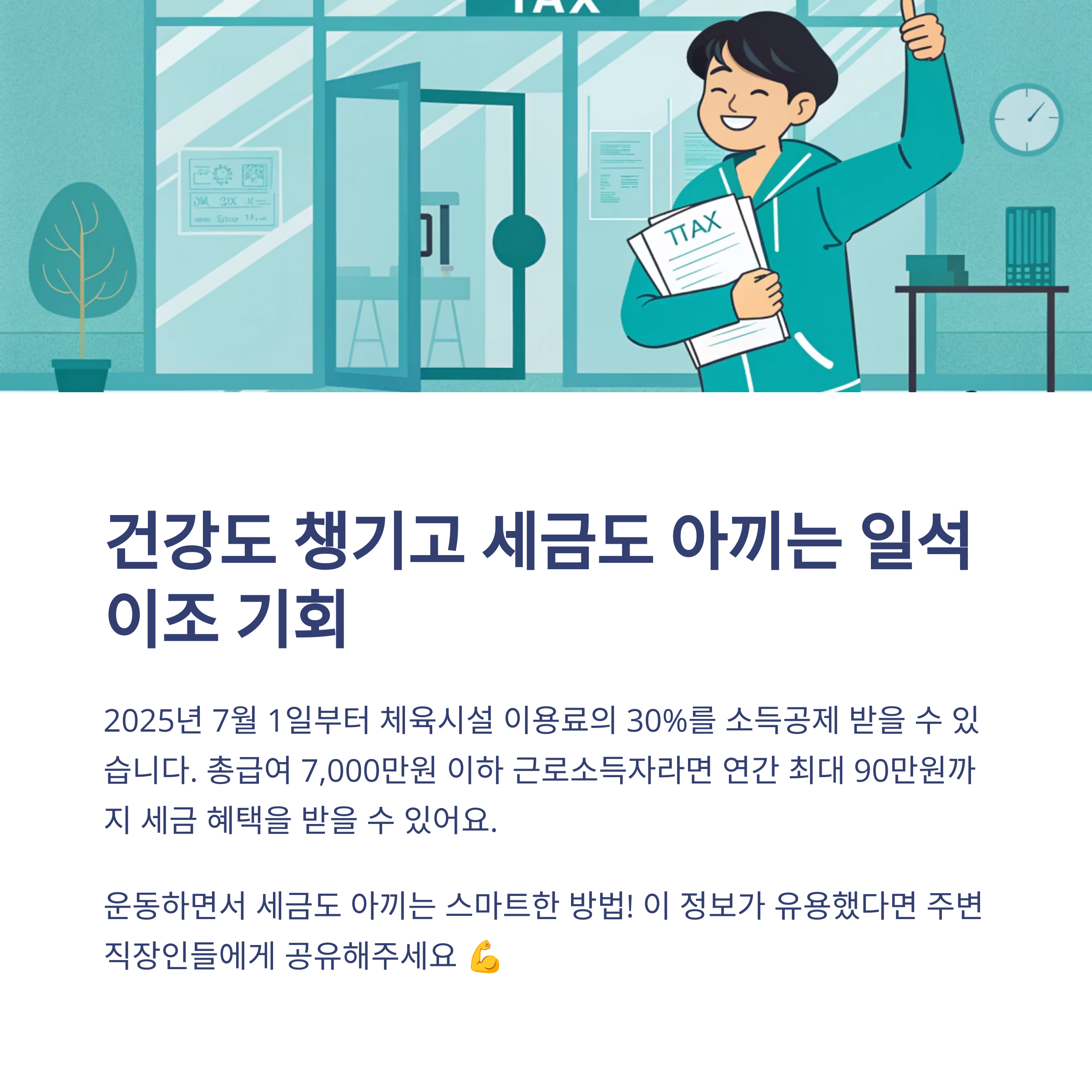운동도 하고, 세금도 줄이고?! 2025년 7월부터 달라지는 체육시설 소득공제 혜택, 당신은 준비되셨나요?