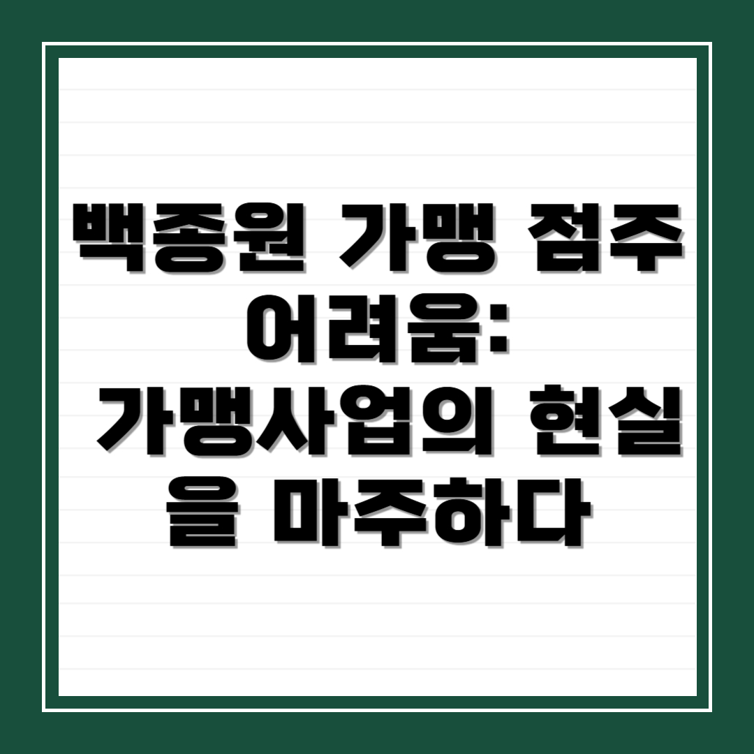 안녕하세요 여러분. 프랜차이즈 사업은 브랜드 힘만 믿고 뛰어들 수 있을까요? 저도 한때 백종원 프랜차이즈에 관심을 가졌던 적이 있었어요. 이름만 들어도 믿음이 갔으니까요. 하지만 최근 들려오는 가맹점주들의 현실 이야기는 그리 밝지만은 않습니다. 오늘은 매출 급감, 가게 매각 실패, 본사 리스크 등 복합적인 위기에 놓인 백종원 가맹점주들의 어려움을 심도 있게 살펴보고자 합니다. 직접 점주들의 목소리를 담아 현실을 있는 그대로 전해드릴게요. 🏪📉