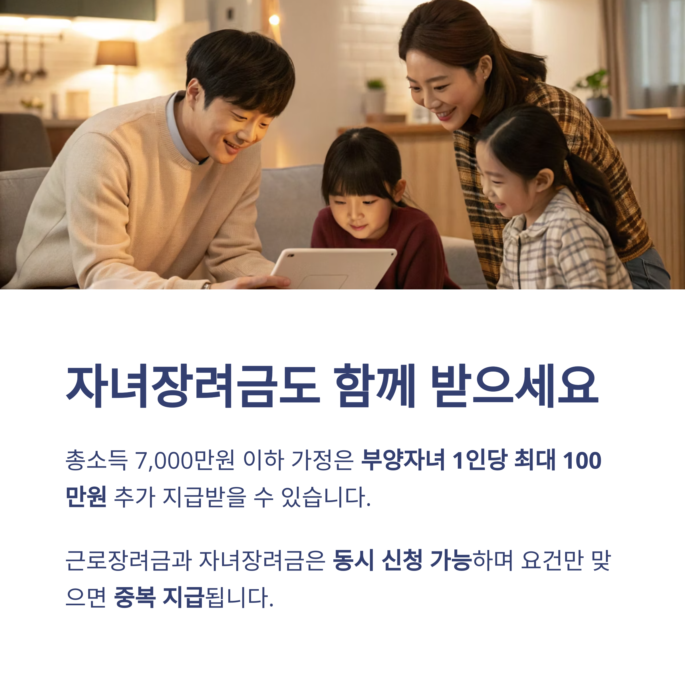 자녀가 있는 경우 반드시 자녀장려금 항목도 체크해서 함께 신청하세요.