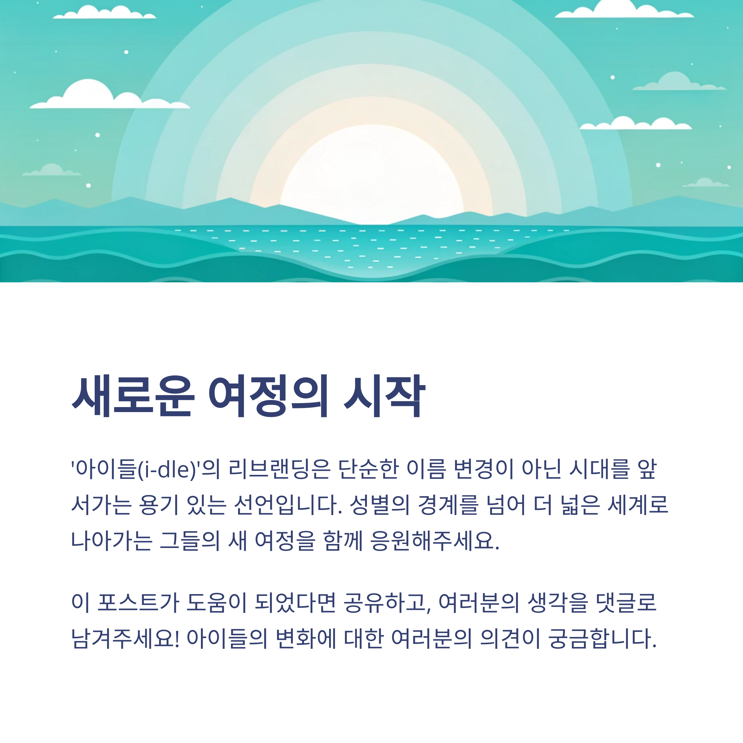 이제 ‘아이들’이라는 이름으로 다시 시작하는 그들의 여정이 정말 기대됩니다. 단순한 이름 변경이 아닌, 시대를 앞서가는 정체성과 용기 있는 선언이었기에 더 큰 의미가 있는 것 같아요. 여러분은 이 변화, 어떻게 느끼셨나요? 댓글로 여러분의 생각을 나눠주세요! 우리 함께 이들의 새로운 페이지를 응원해요.