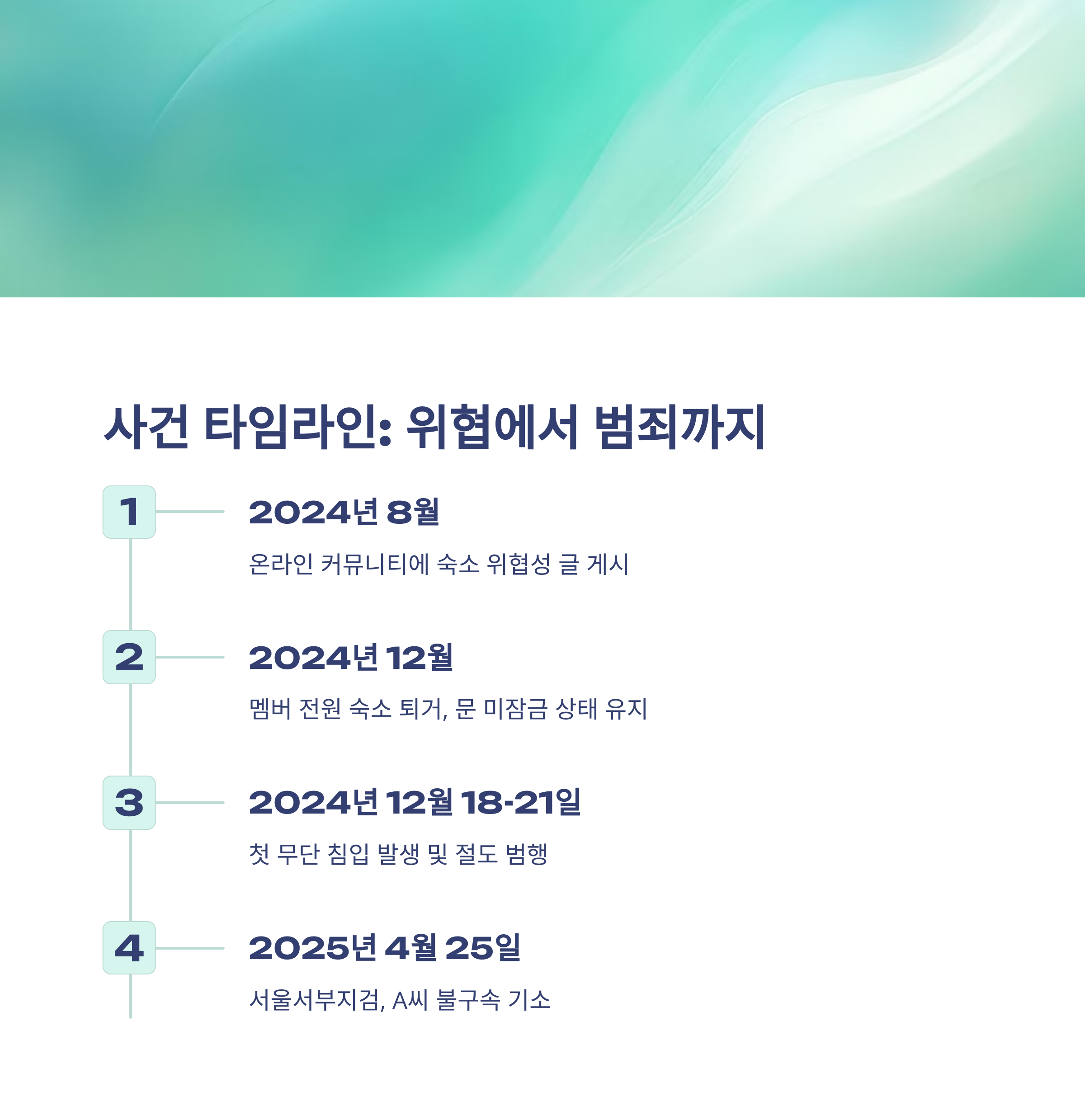 | 2024년 8월 | 온라인 커뮤니티에 숙소 관련 위협성 글 게시 |
