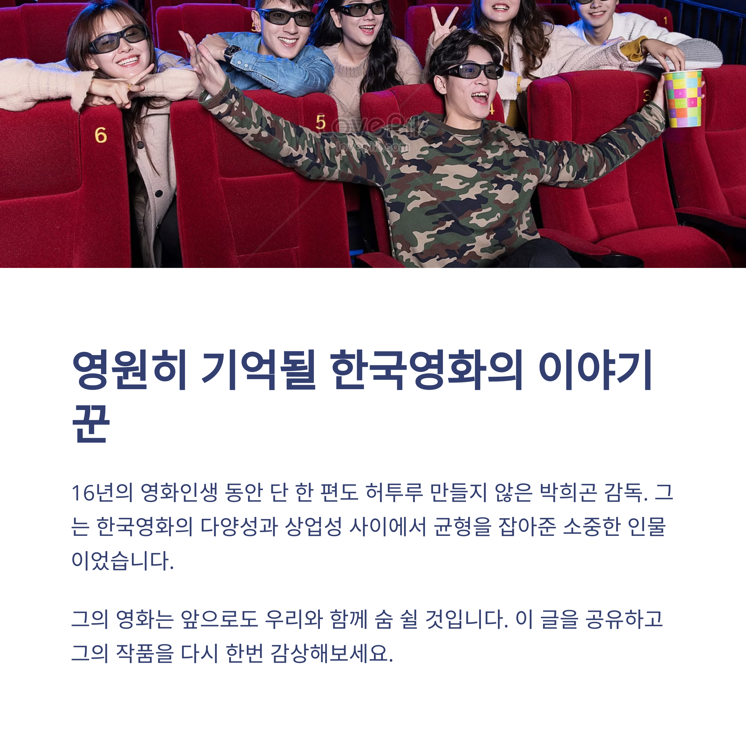 박희곤 감독의 별세는 단지 한 사람의 죽음을 넘어서, 한국영화계가 잃은 크나큰 재능에 대한 상실이기도 합니다. 비록 네 편의 장편영화밖에 남기지 않았지만, 그의 작품들은 분명히 관객의 마음속에 오래도록 남을 것입니다. 한국적이면서도 현대적인, 깊은 메시지를 담아내는 연출력은 우리 시대의 진정한 이야기꾼으로 그를 기억하게 만듭니다. 부디 좋은 곳에서 편히 쉬시길 바랍니다. 당신의 영화는 영원히 관객과 함께 숨 쉴 것입니다. 박희곤 감독님, 감사합니다.